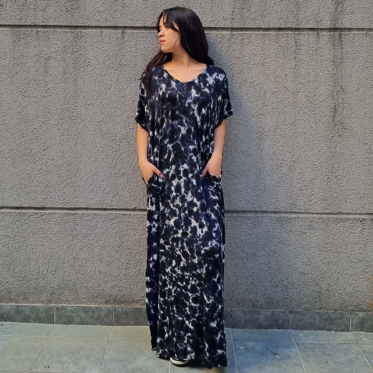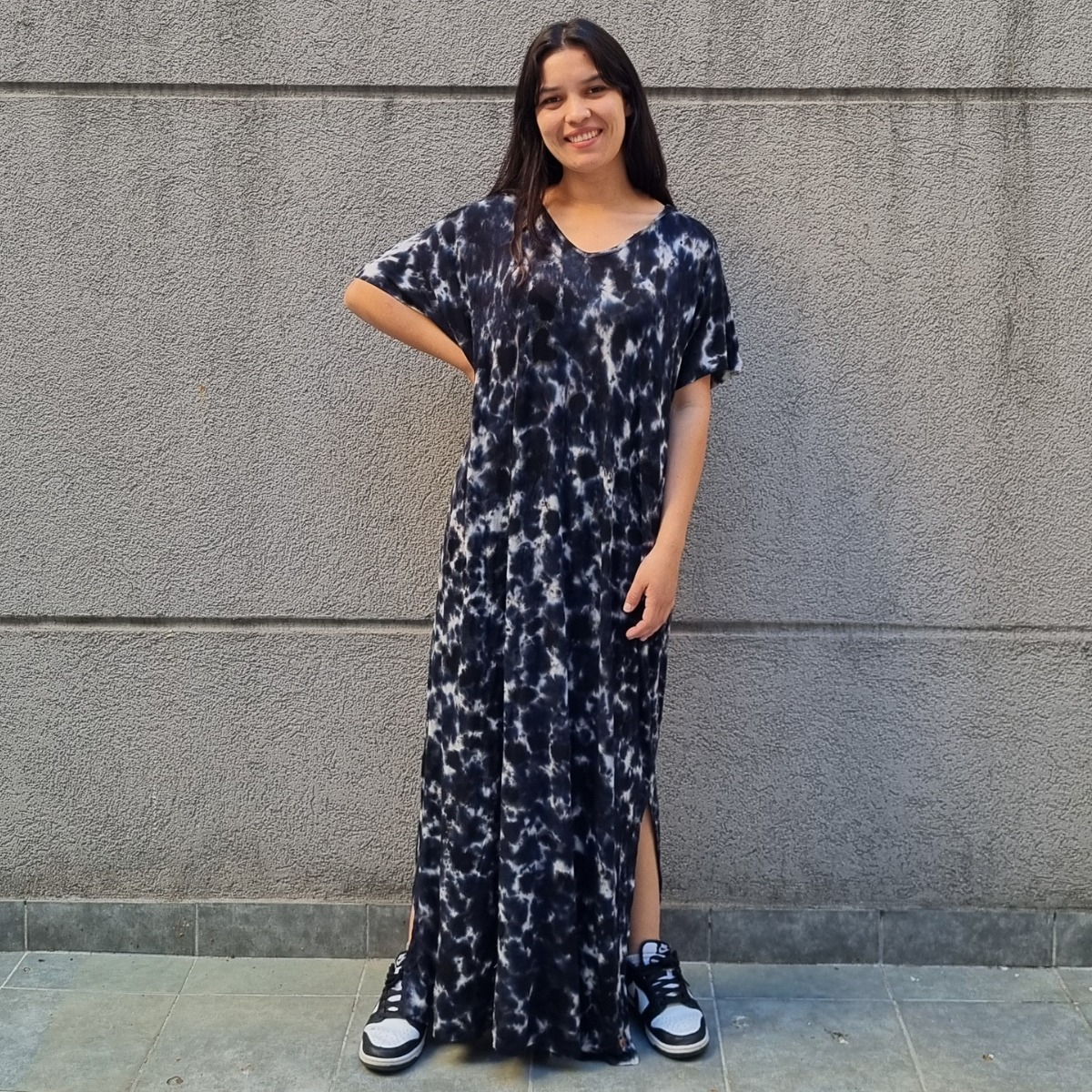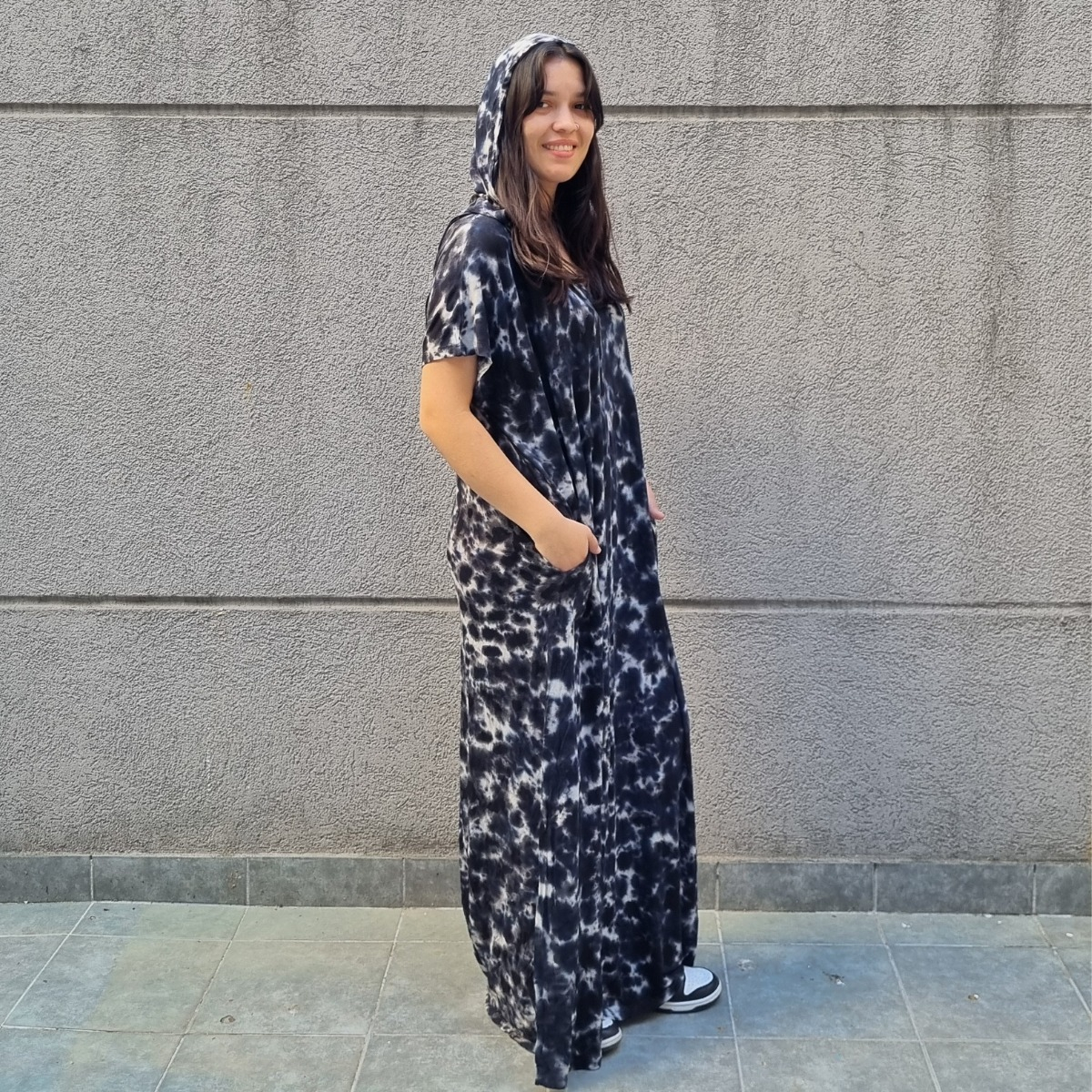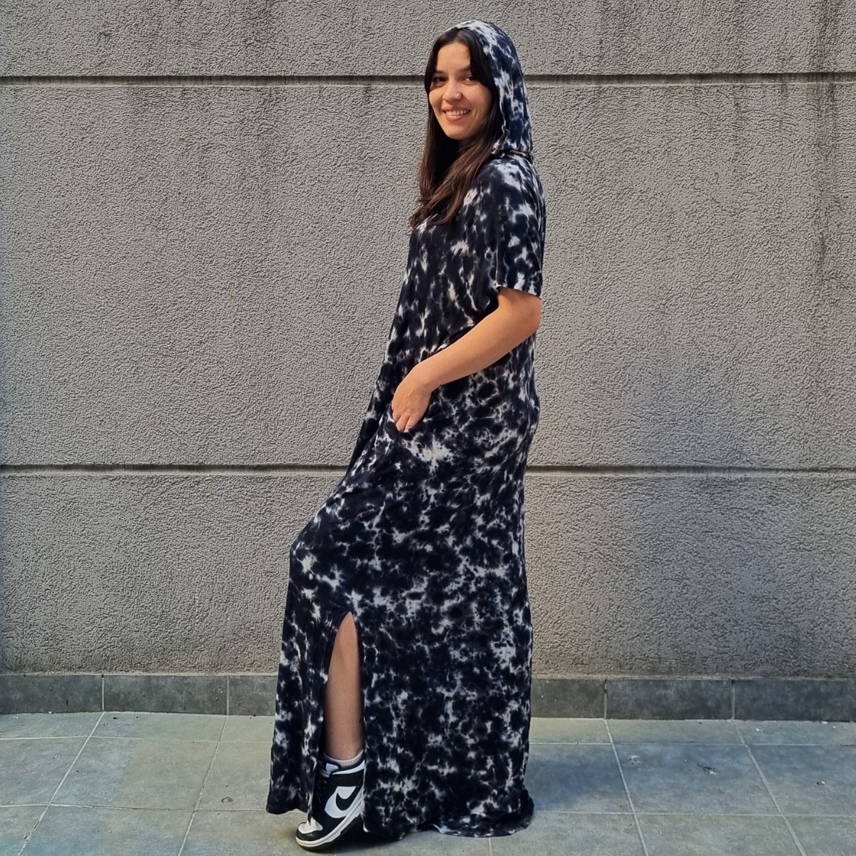 Vestido Largo Estampado Batik Capucha y bolsillos