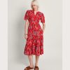 VESTIDO FLORAL CUELLO V DETALLE LACE MANGA CORTA LARGO VOLADOS