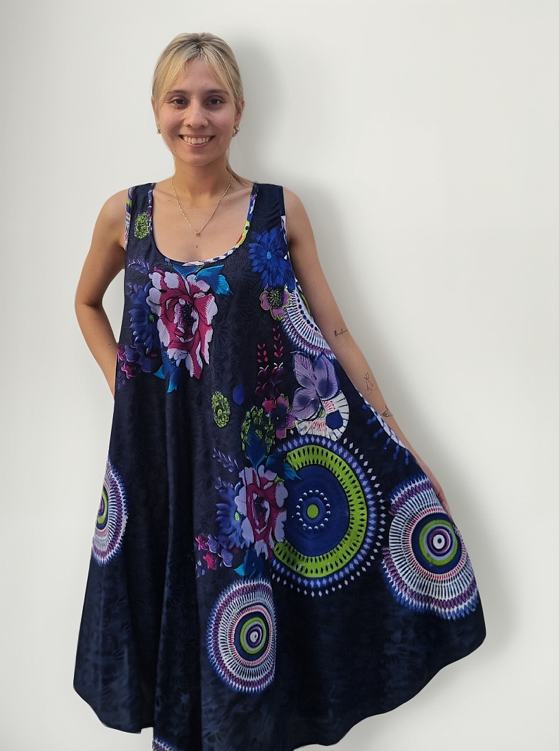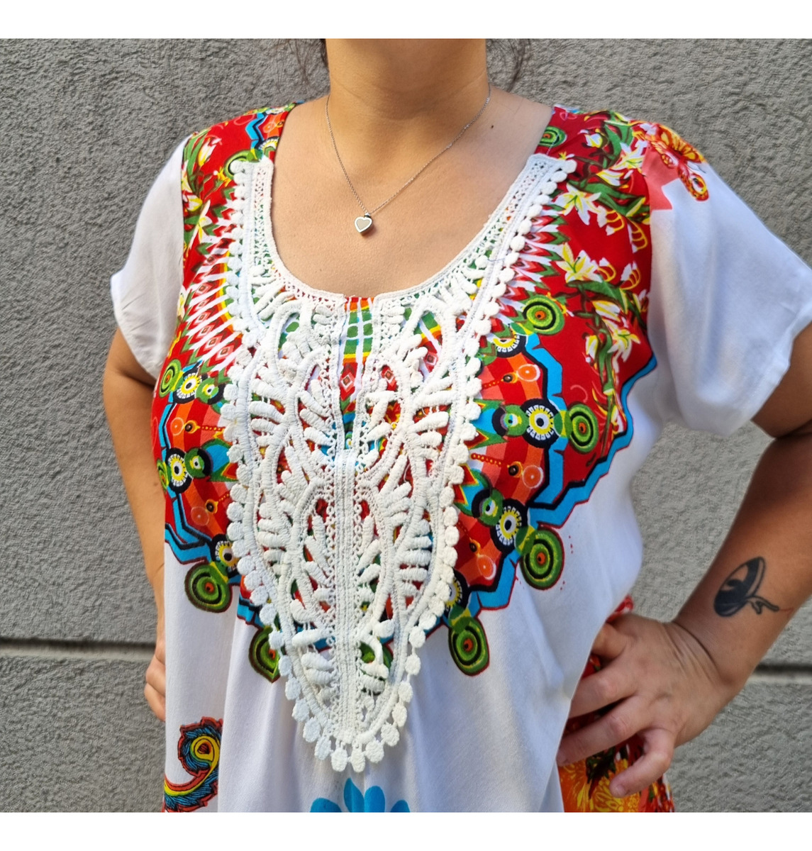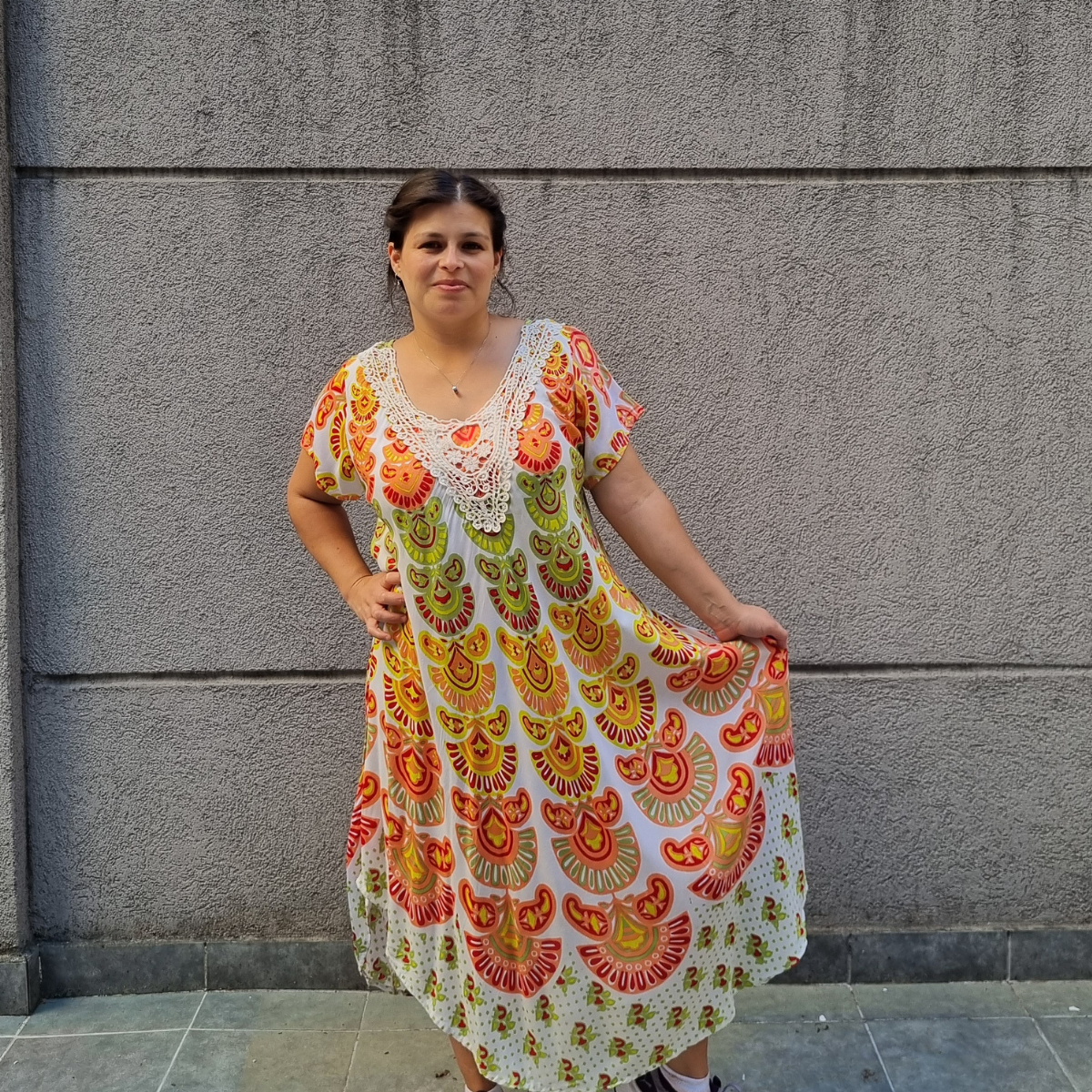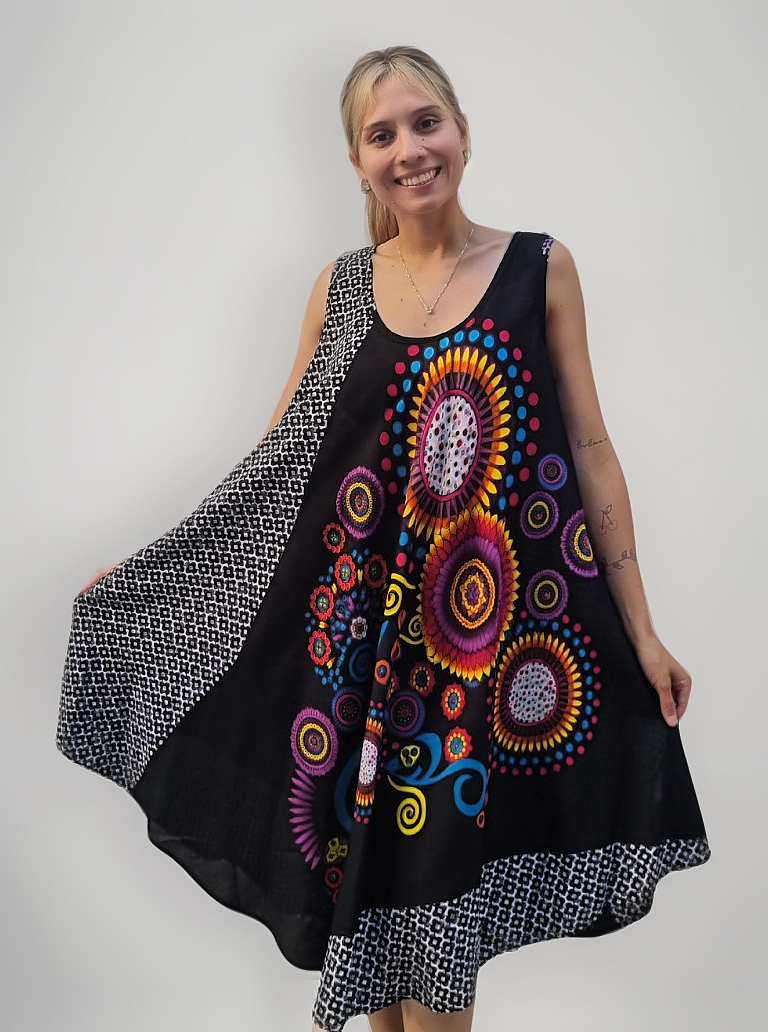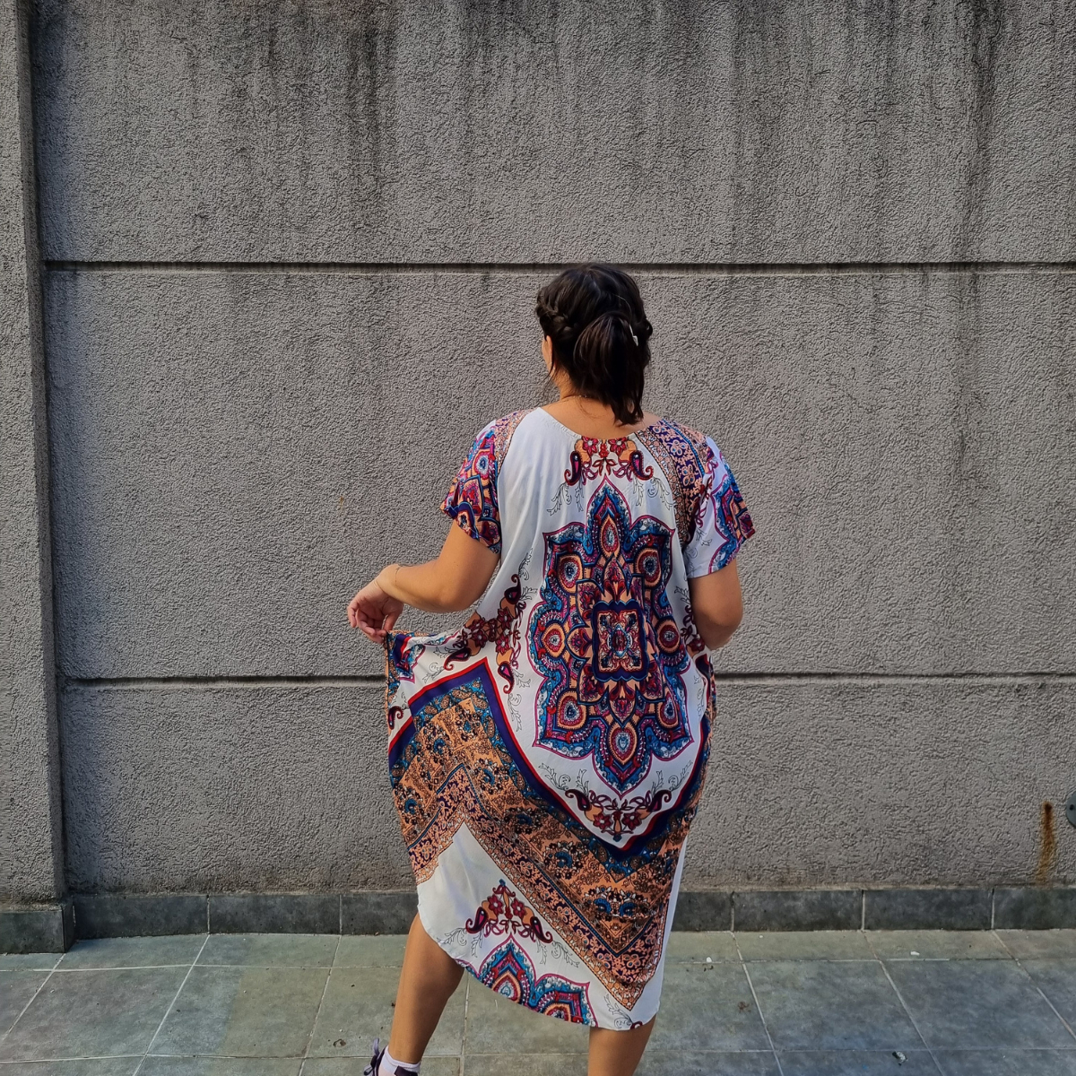 LOS COLORES Y FORMAS PUEDEN VARIAR. SE GARANTIZA EL COLOR DE FONDO. LA PRENDA ES TALLE UNICO, SE ADAPTA DE M A XXL.