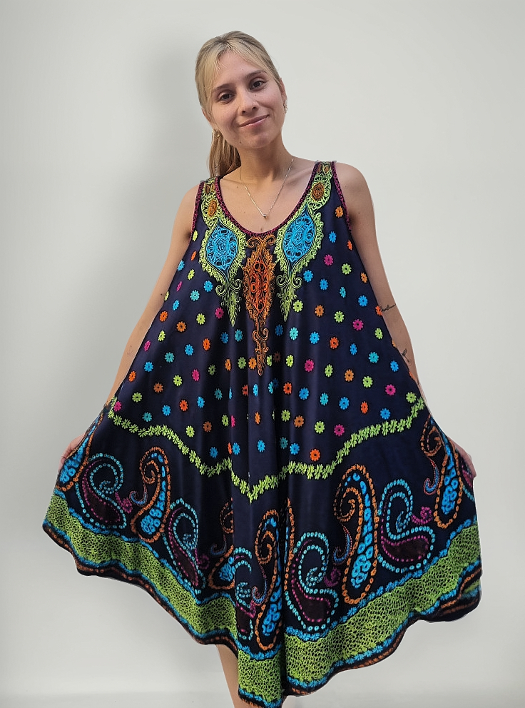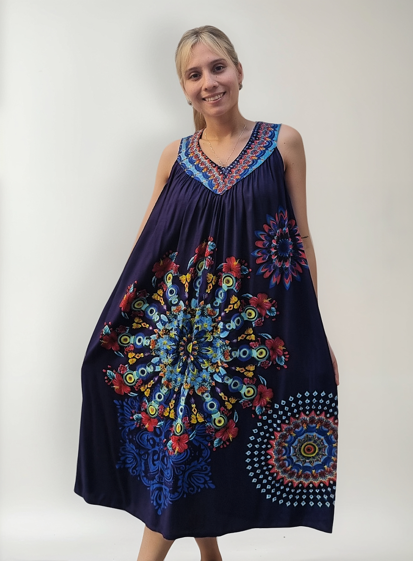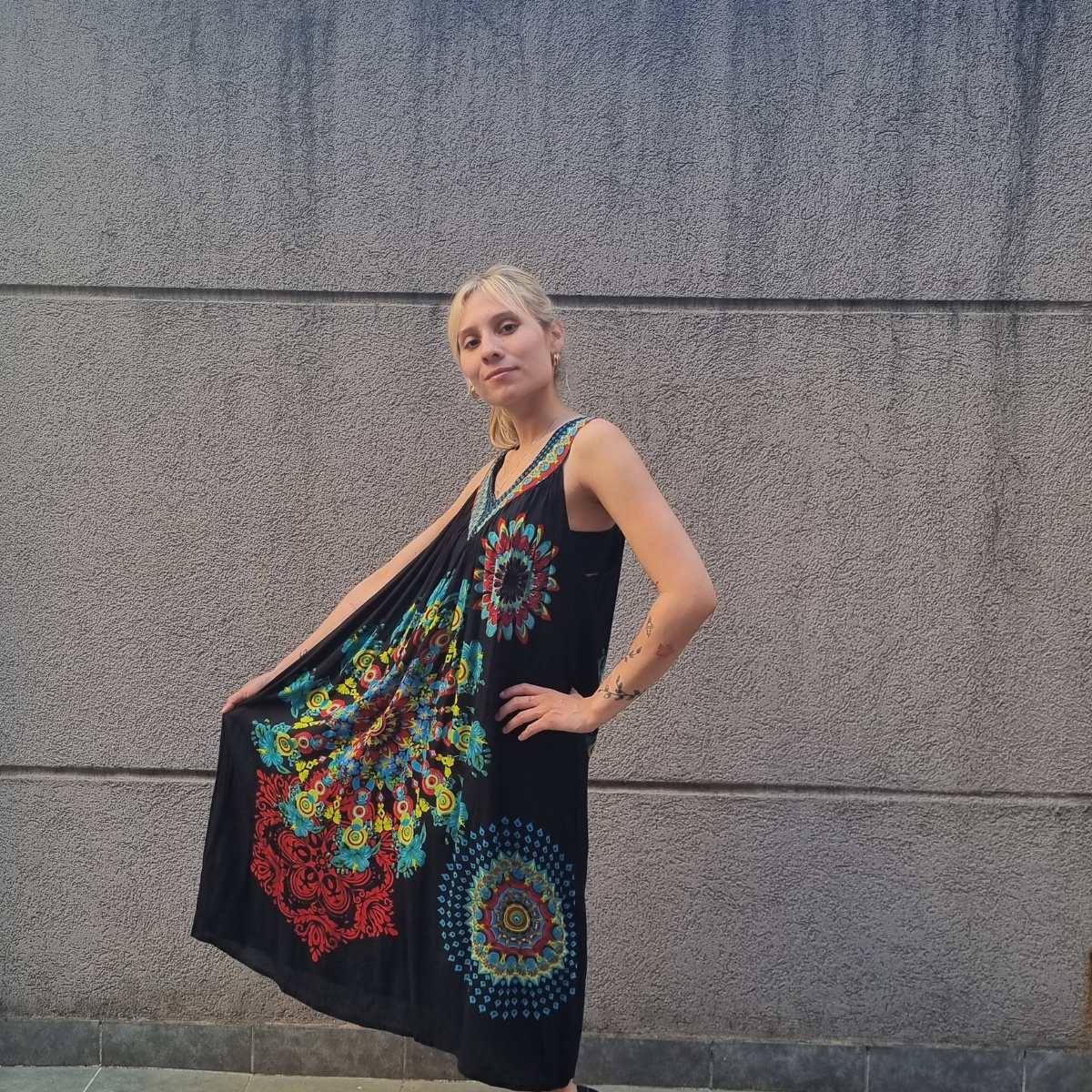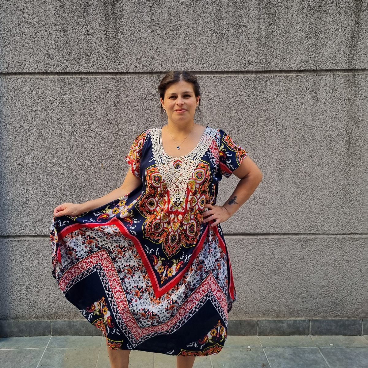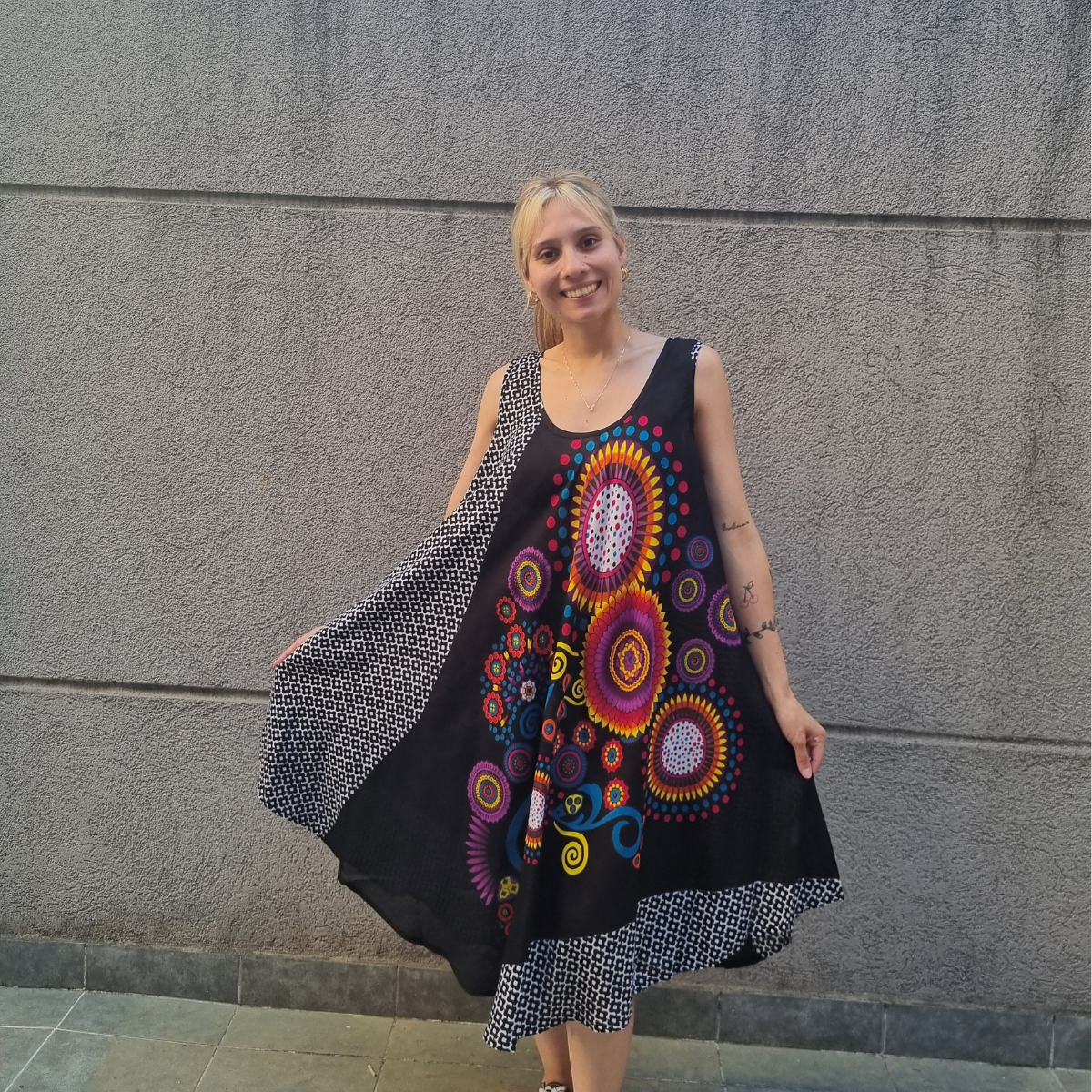 LOS COLORES Y FORMAS PUEDEN VARIAR. SE GARANTIZA EL COLOR DE FONDO. LA PRENDA ES TALLE UNICO, SE ADAPTA DE M A XXL.