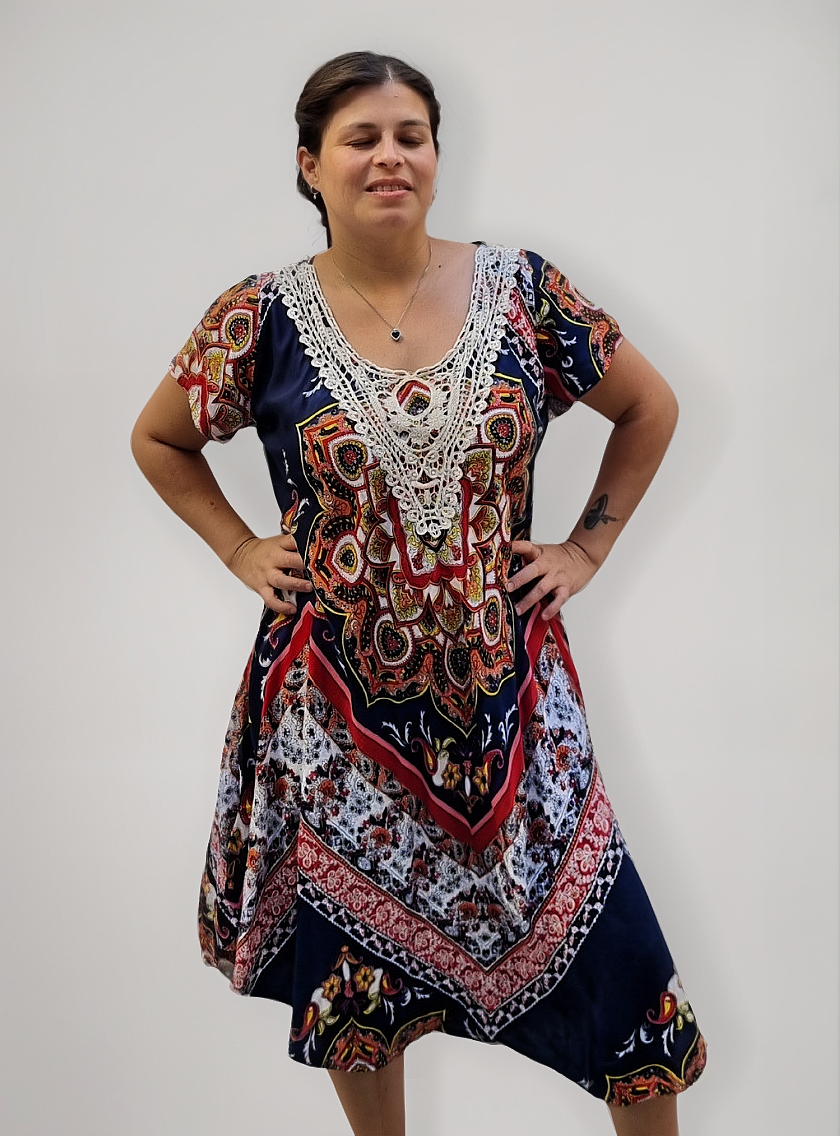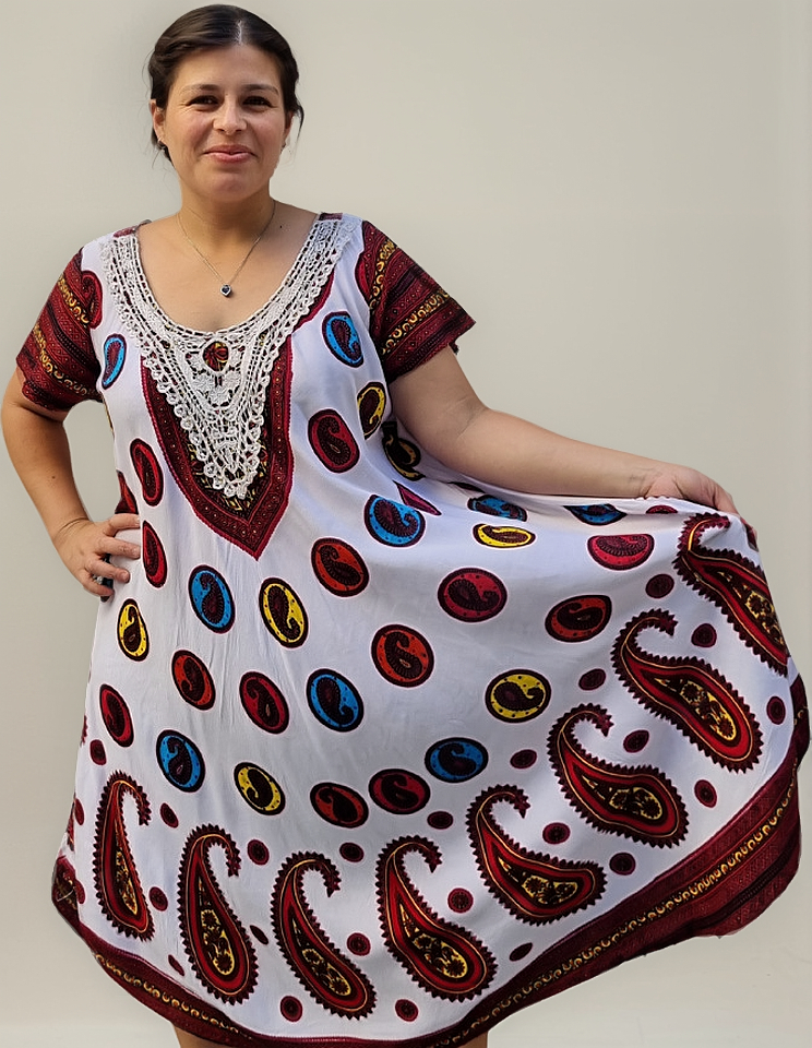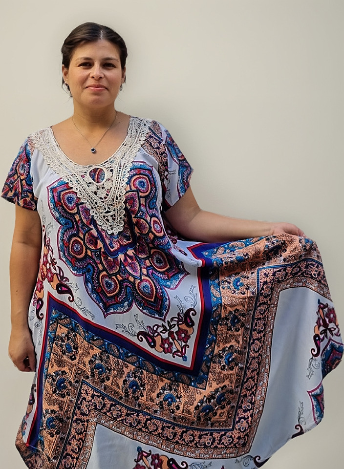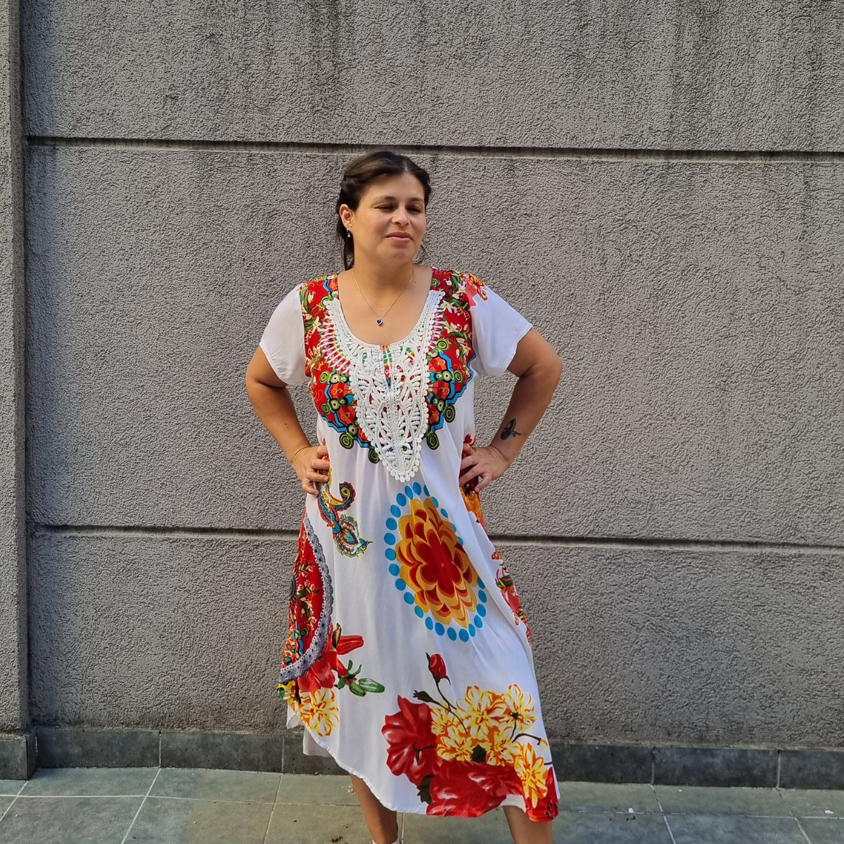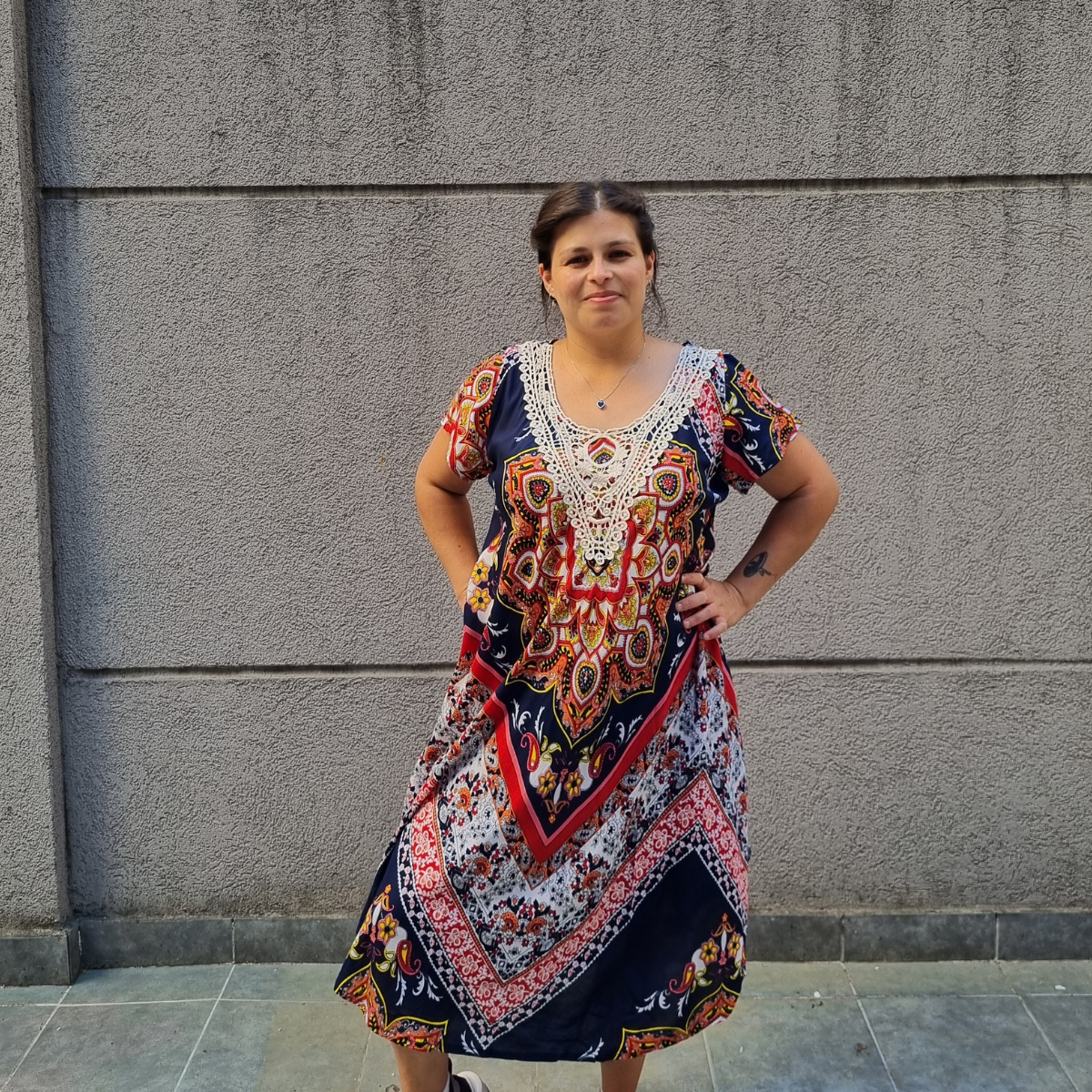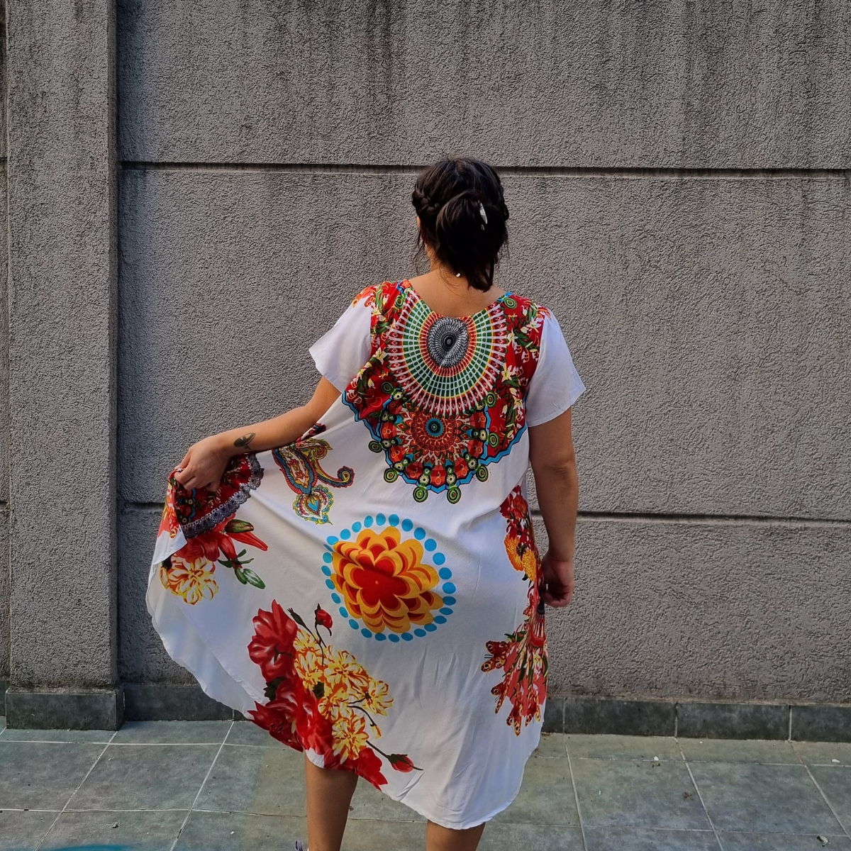LOS COLORES Y FORMAS PUEDEN VARIAR. SE GARANTIZA EL COLOR DE FONDO. LA PRENDA ES TALLE UNICO, SE ADAPTA DE M A XXL.