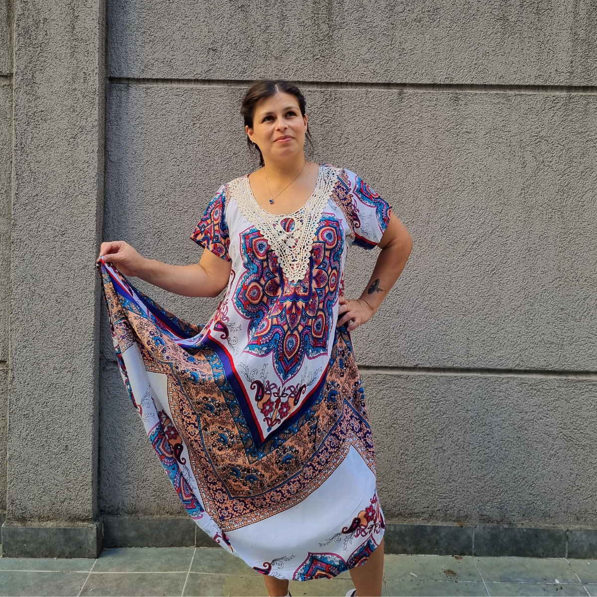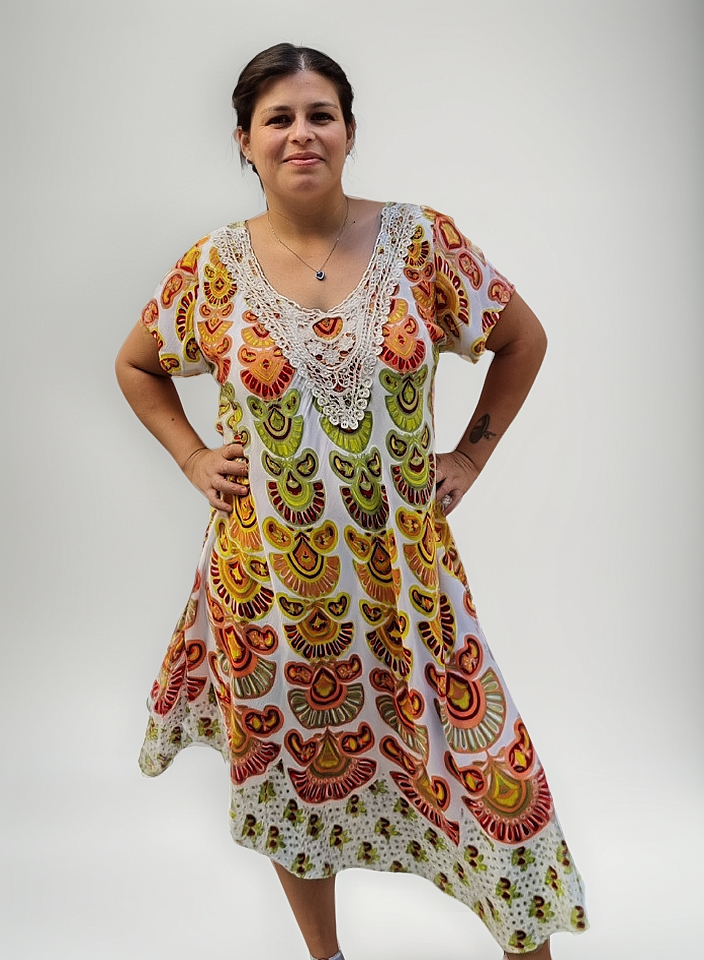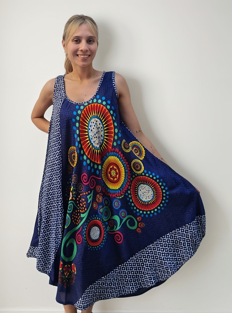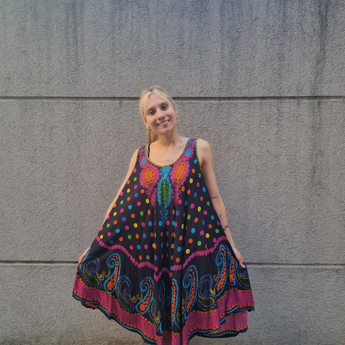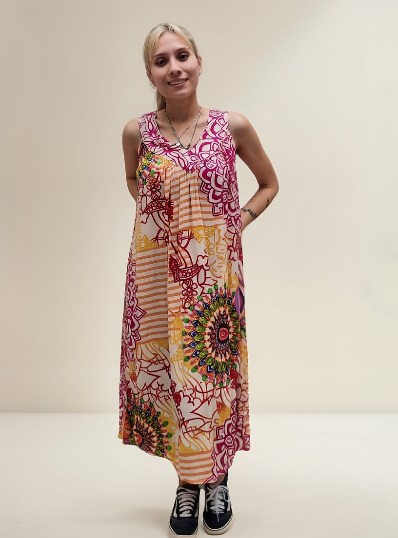 LOS COLORES Y FORMAS PUEDEN VARIAR. SE GARANTIZA EL COLOR DE FONDO. LA PRENDA ES TALLE UNICO, SE ADAPTA DE M A XXL.