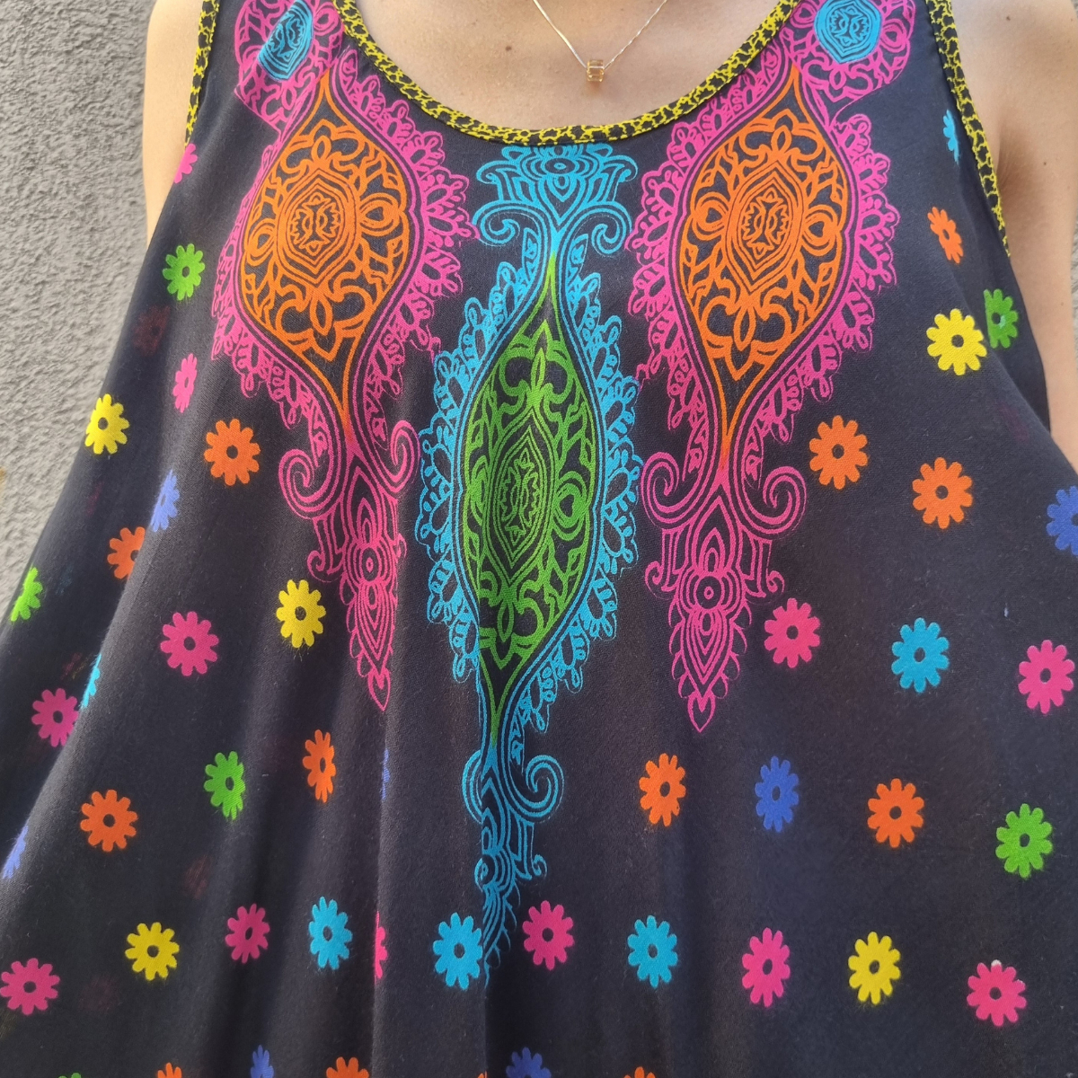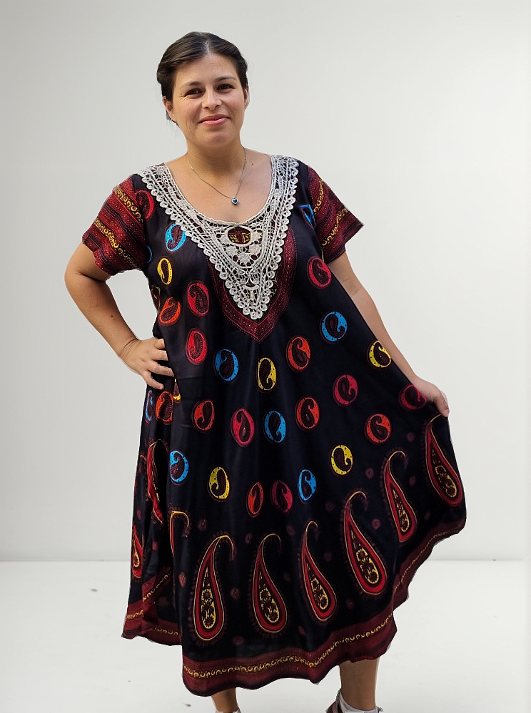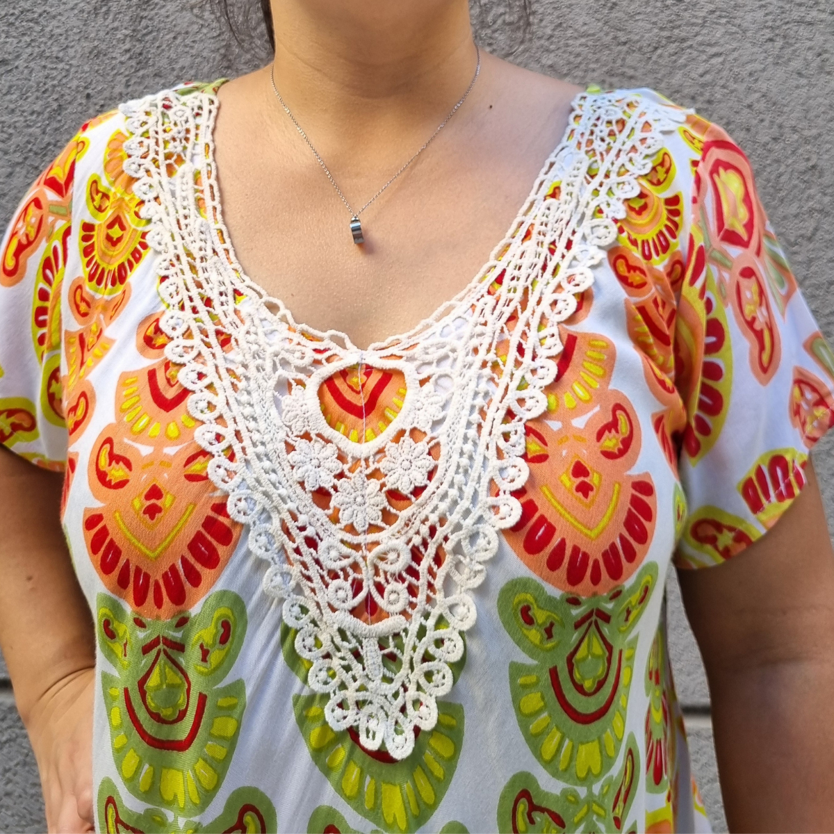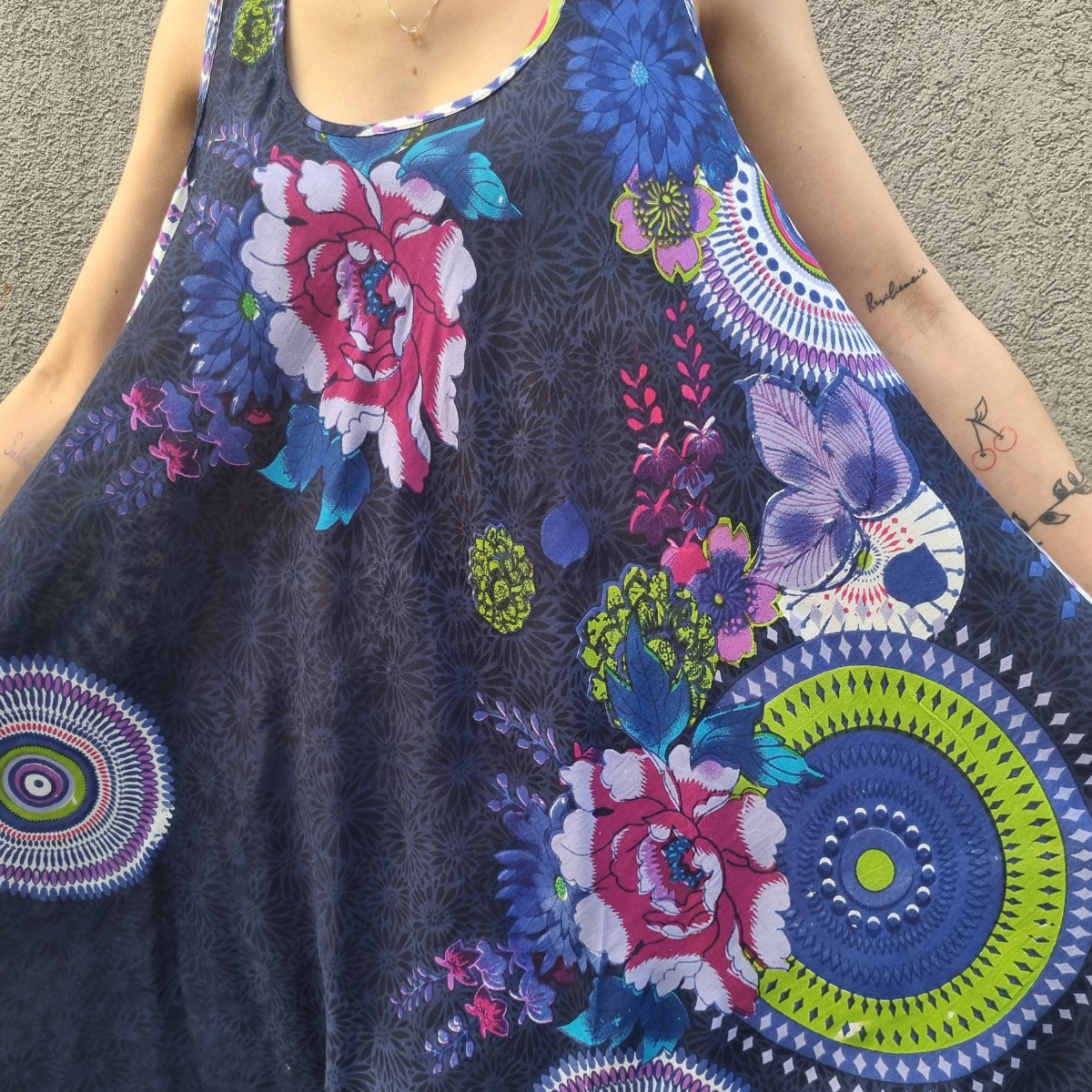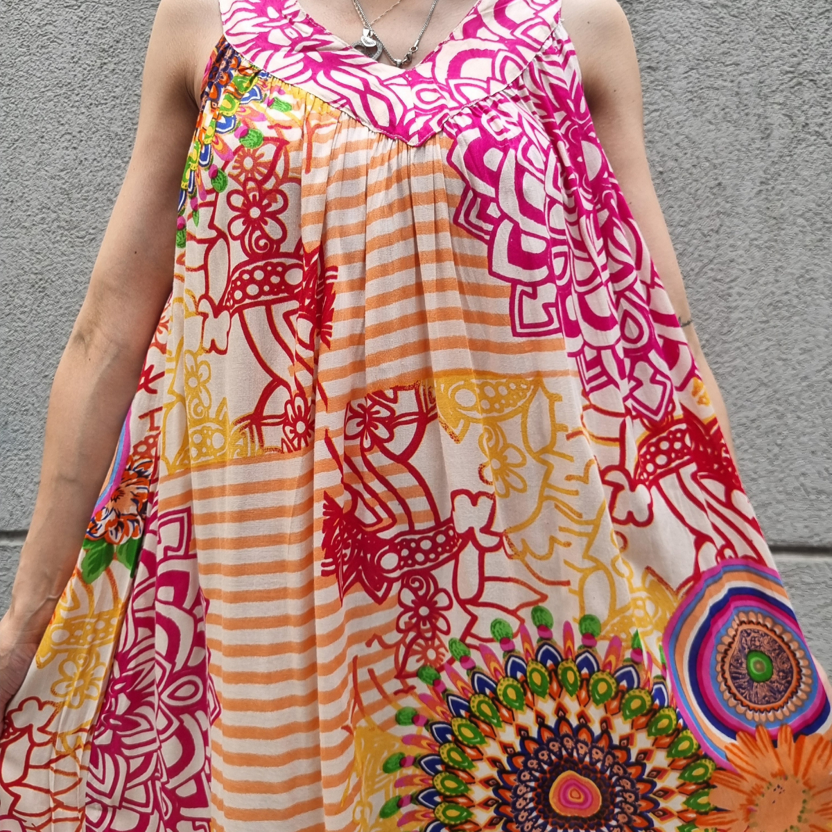 LOS COLORES Y FORMAS PUEDEN VARIAR. SE GARANTIZA EL COLOR DE FONDO. LA PRENDA ES TALLE UNICO, SE ADAPTA DE M A XXL.
