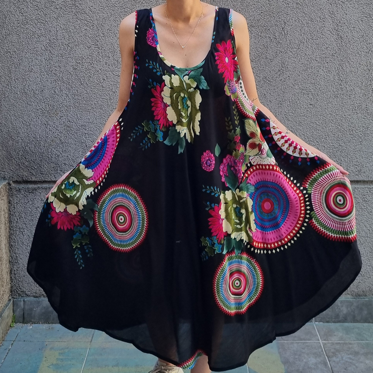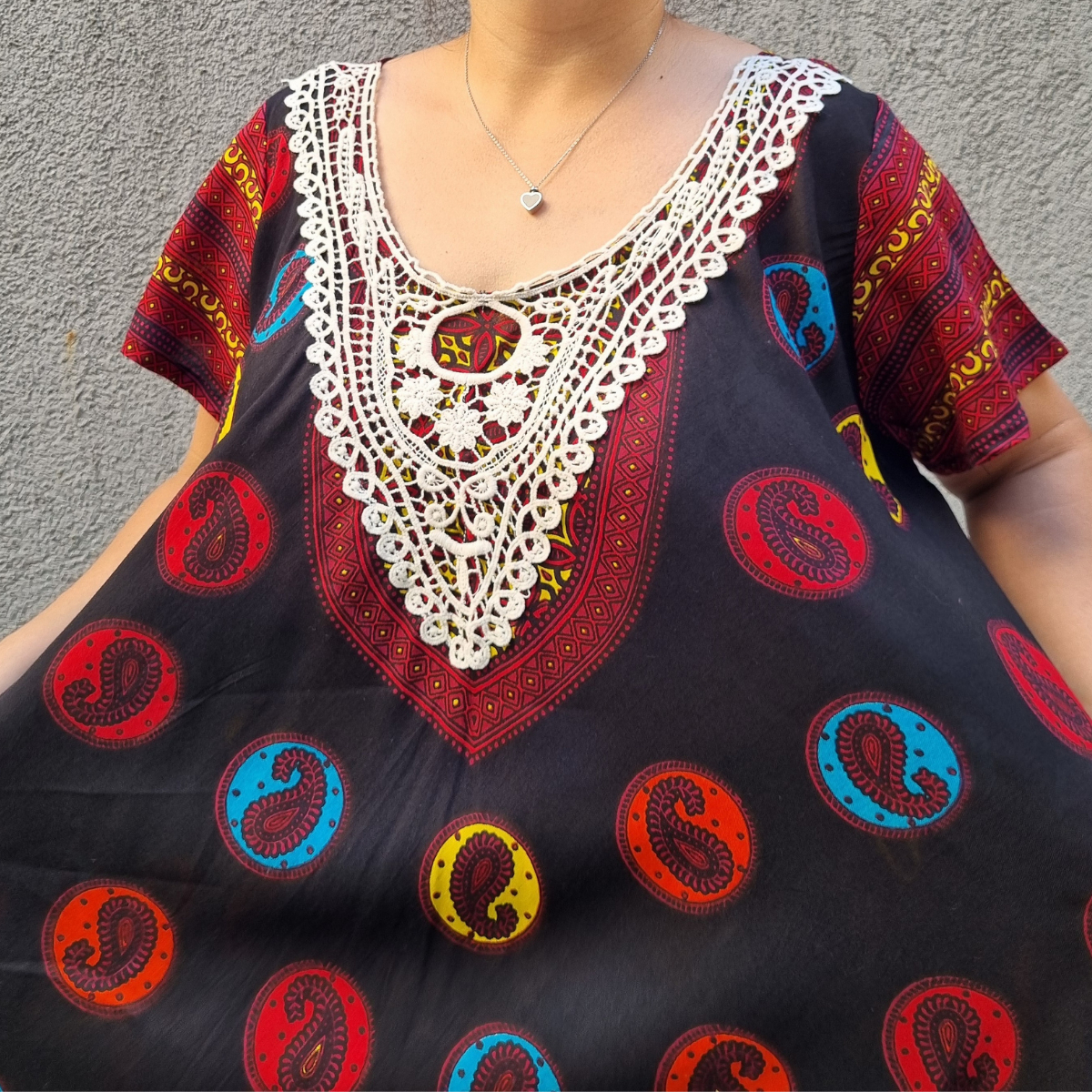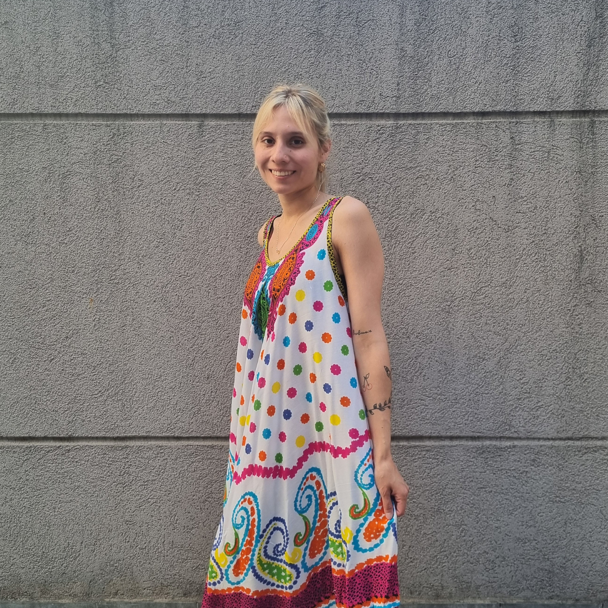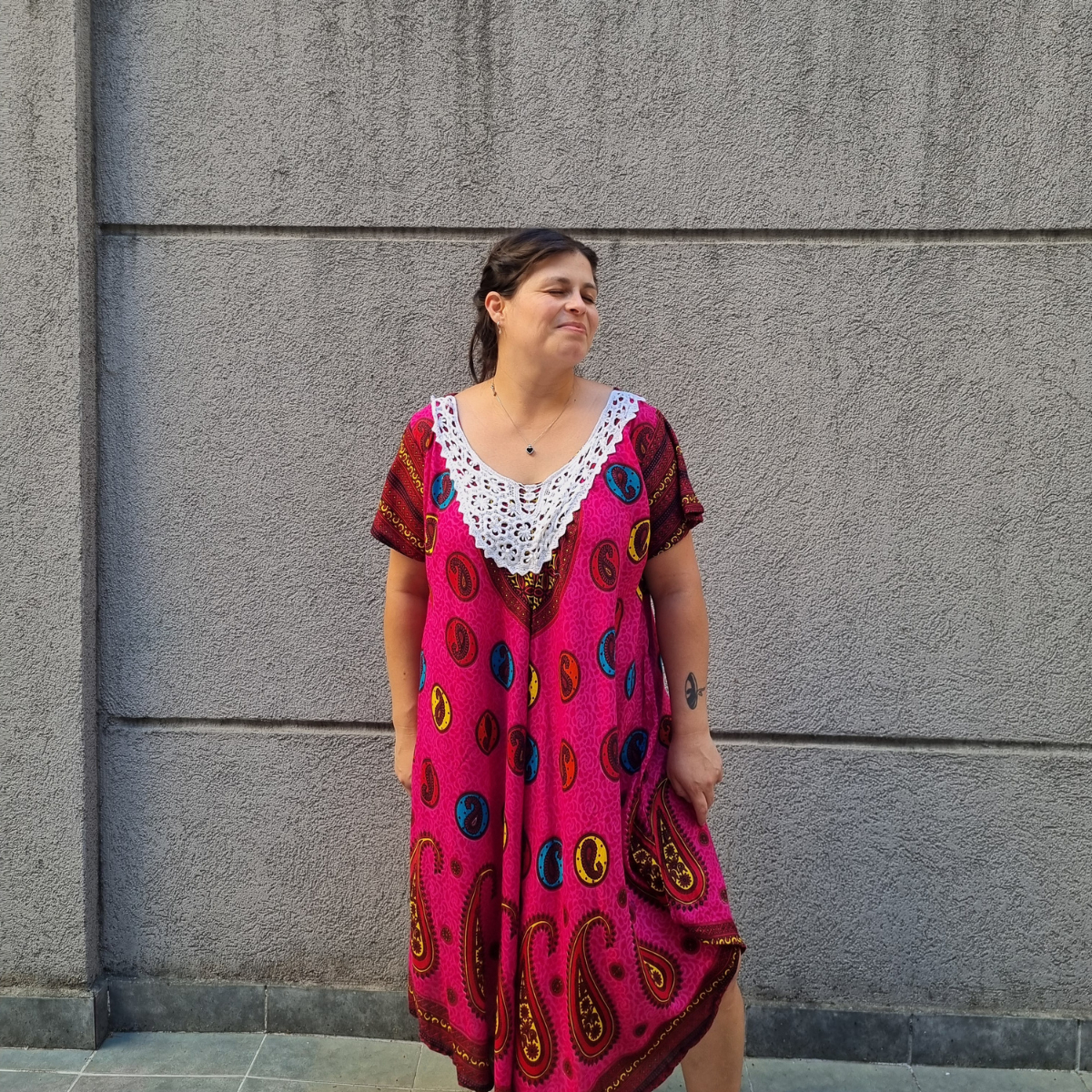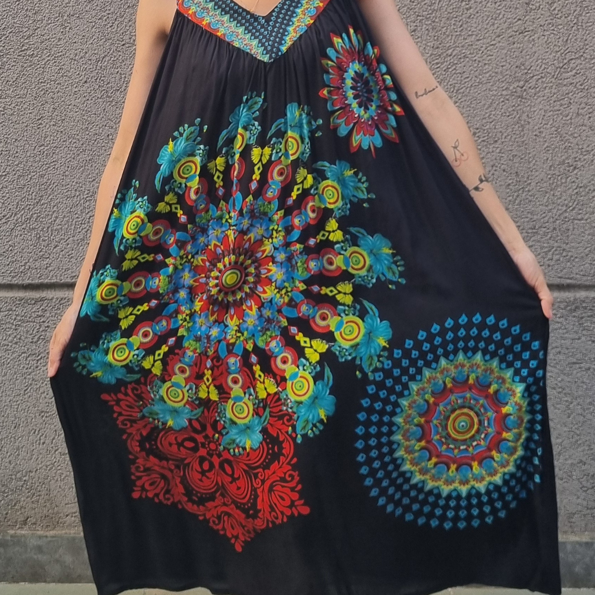 LOS COLORES Y FORMAS PUEDEN VARIAR. SE GARANTIZA EL COLOR DE FONDO. LA PRENDA ES TALLE UNICO, SE ADAPTA DE M A XXL.