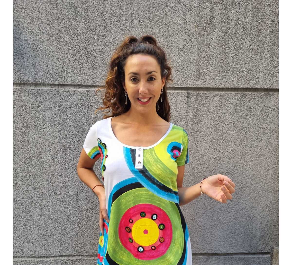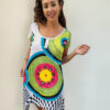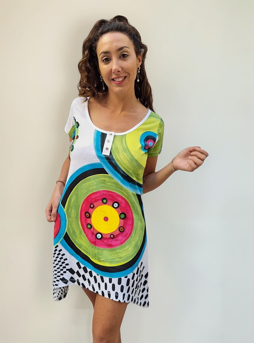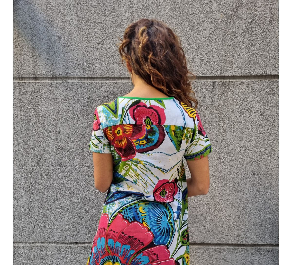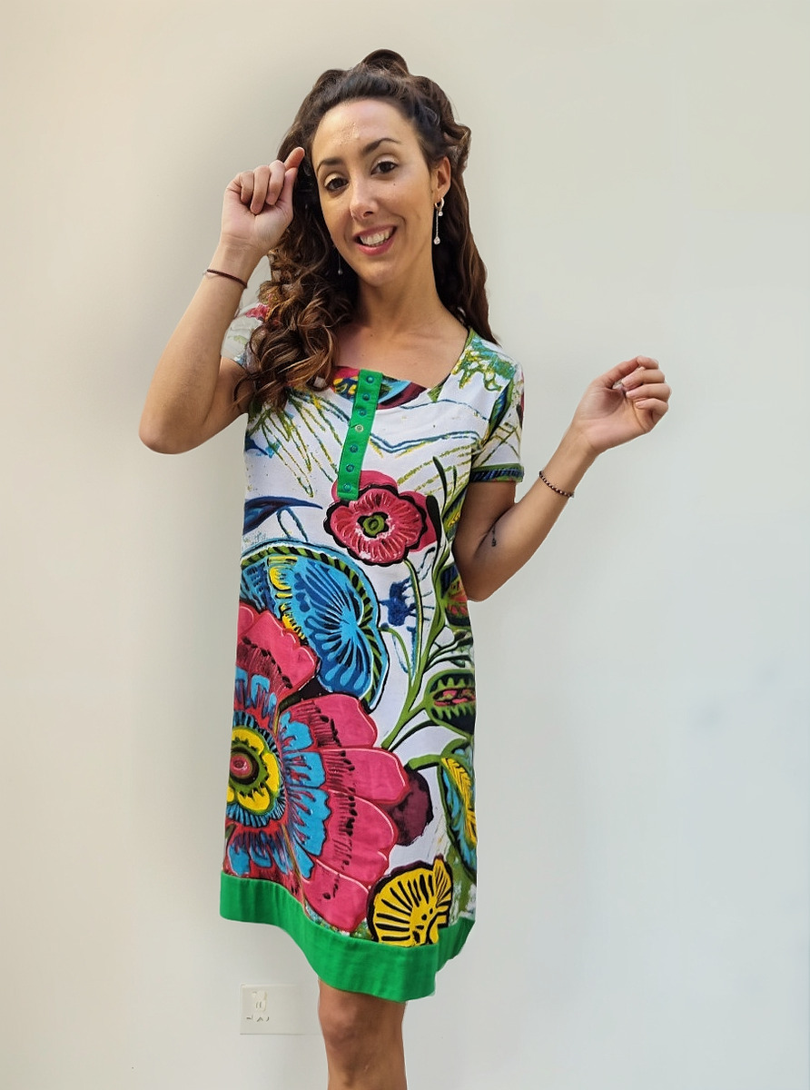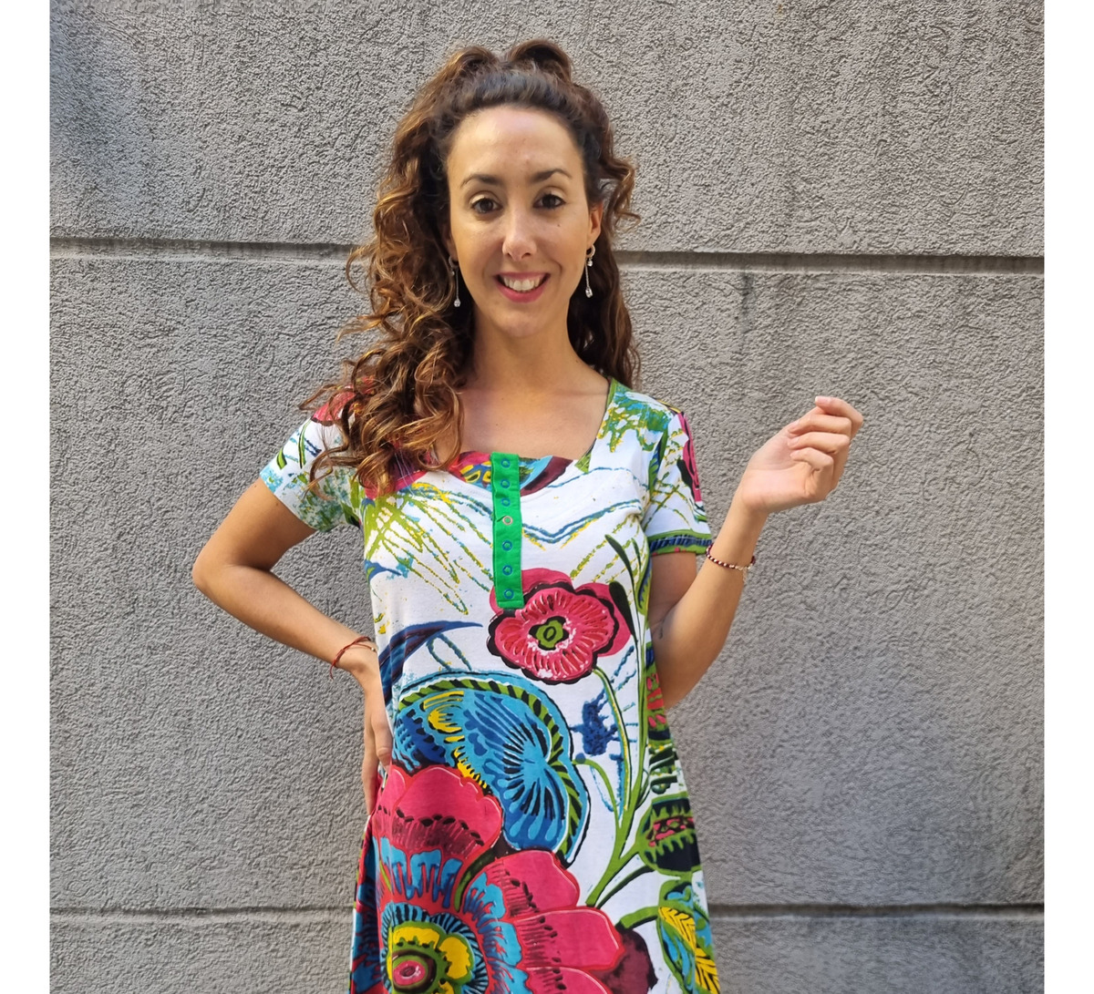 3) VESTIDO CORTO FLORES BOTON CLIP