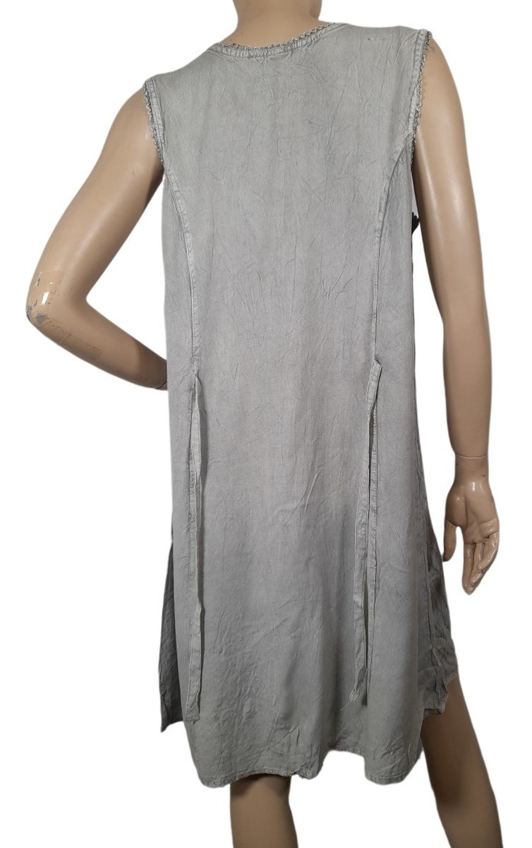 Vestido stonewash bordado con detalles de lentejuelas – 2 modelos: Abotonado y Solero.