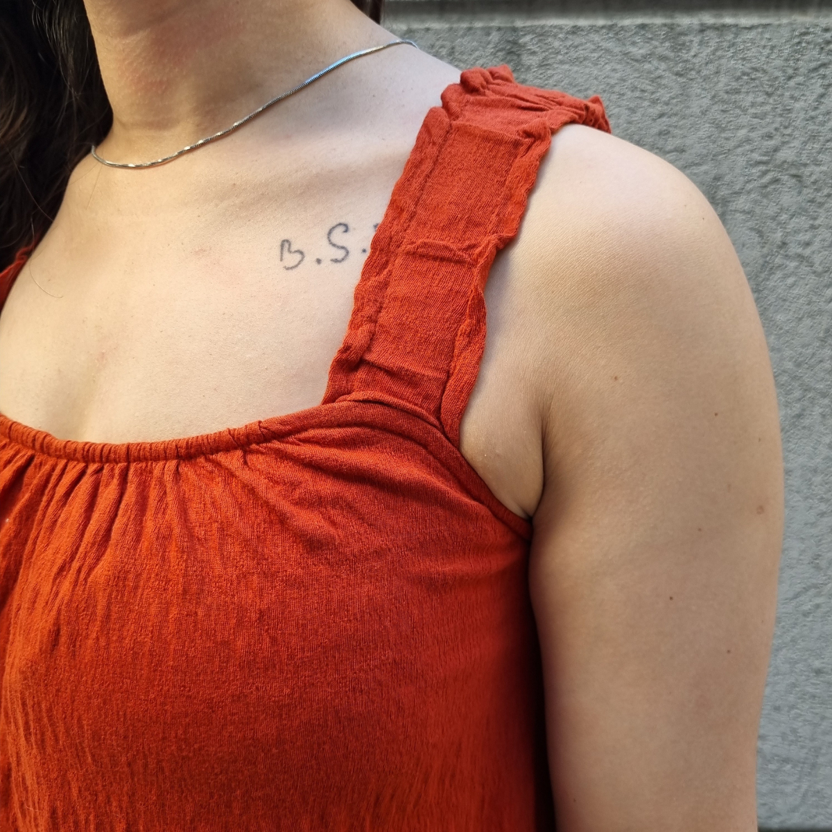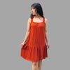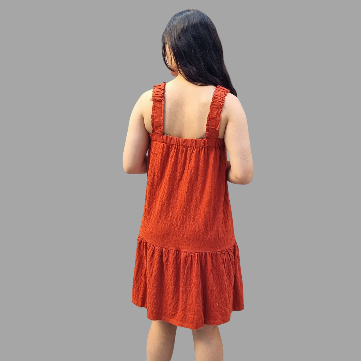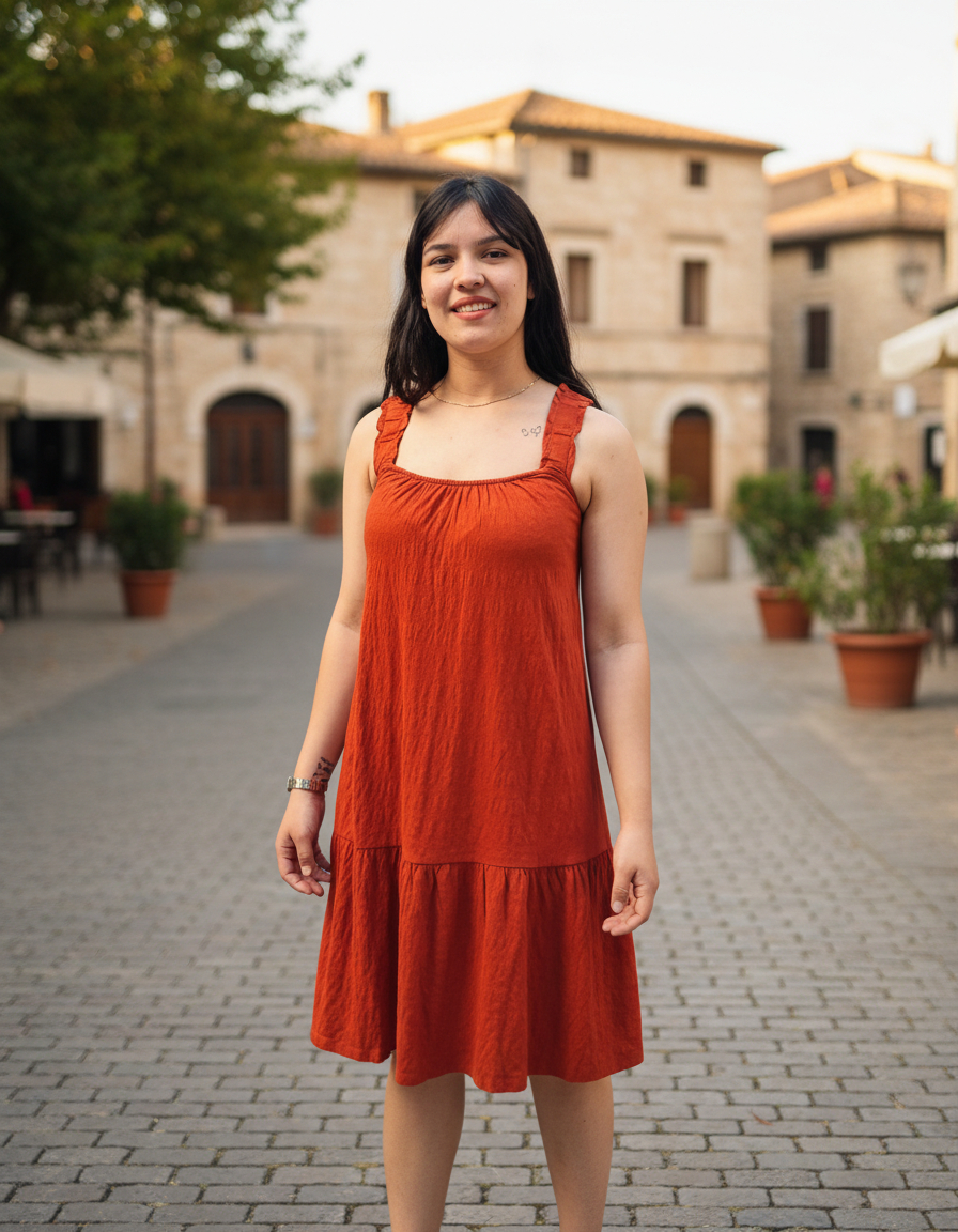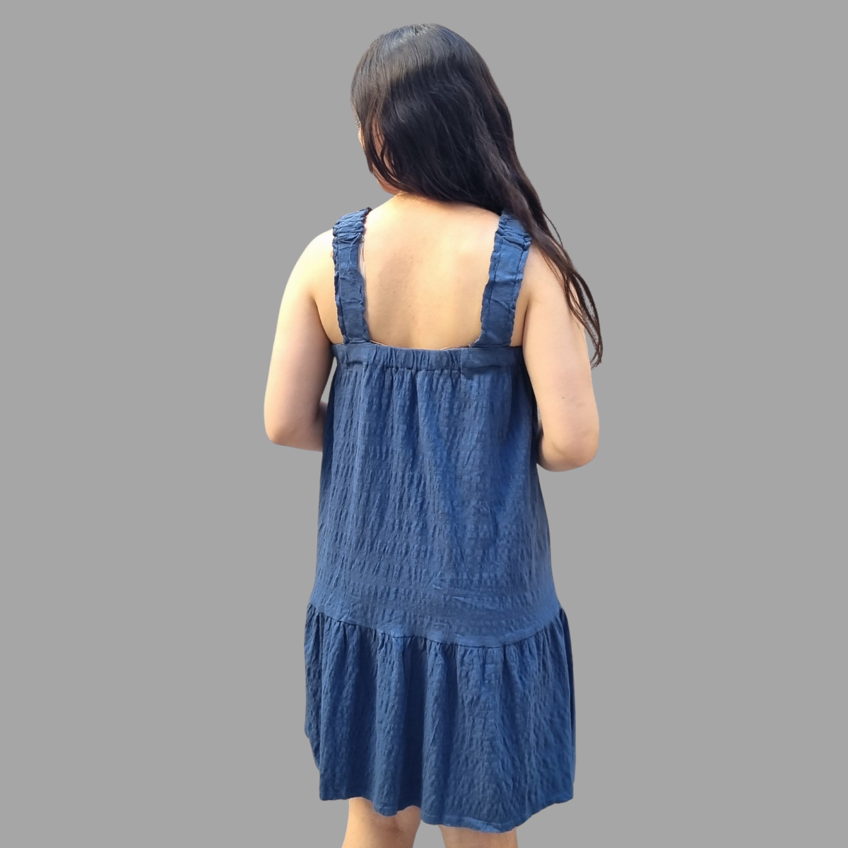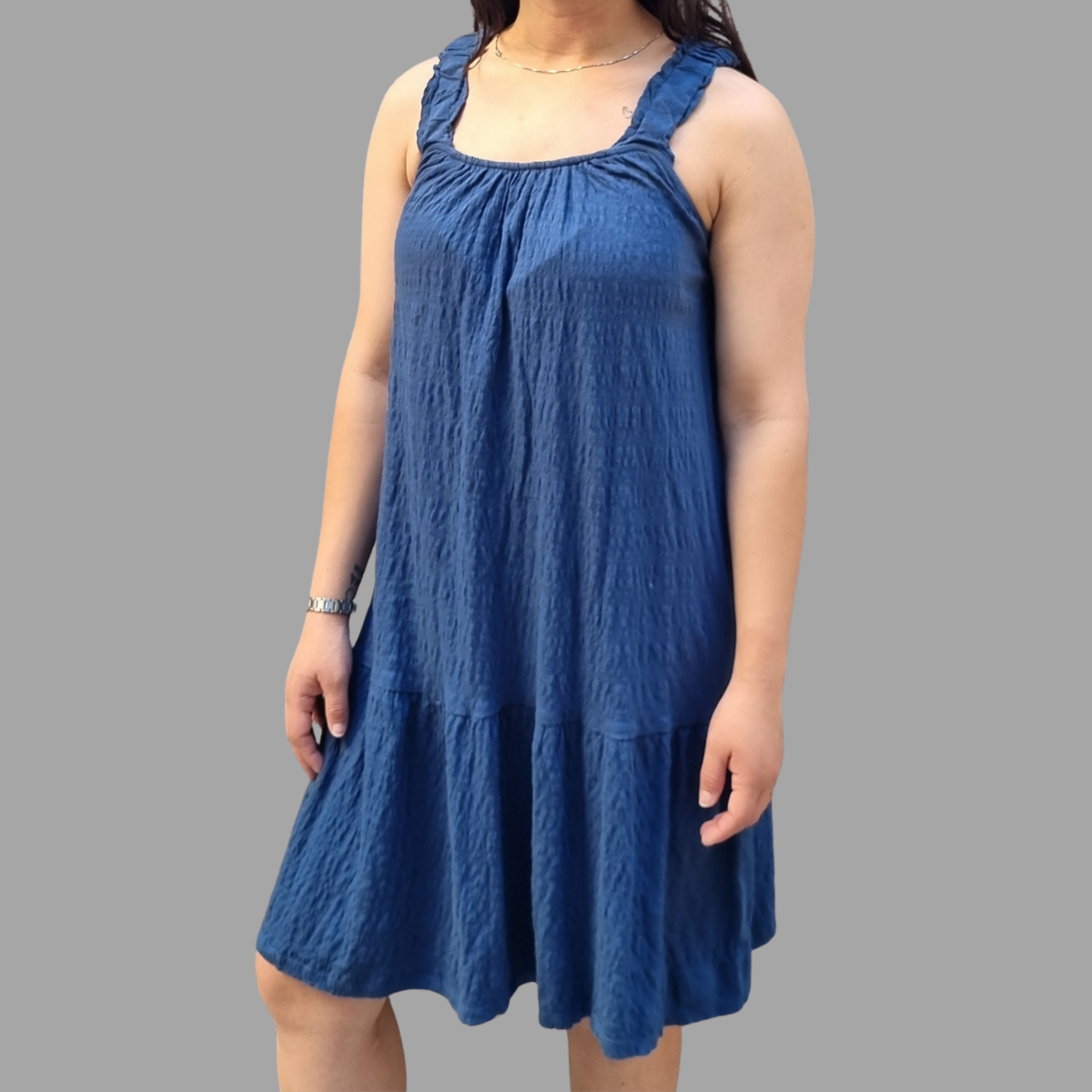 VESTIDO CORTO SUAVE AMPLIO CON TIRANTES ELASTIZADOS TERMINACIÓN VOLADOS